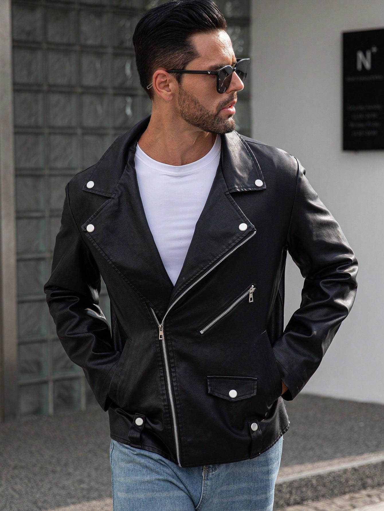MEN ZIP UP PU LEATHER MOTO JACKET