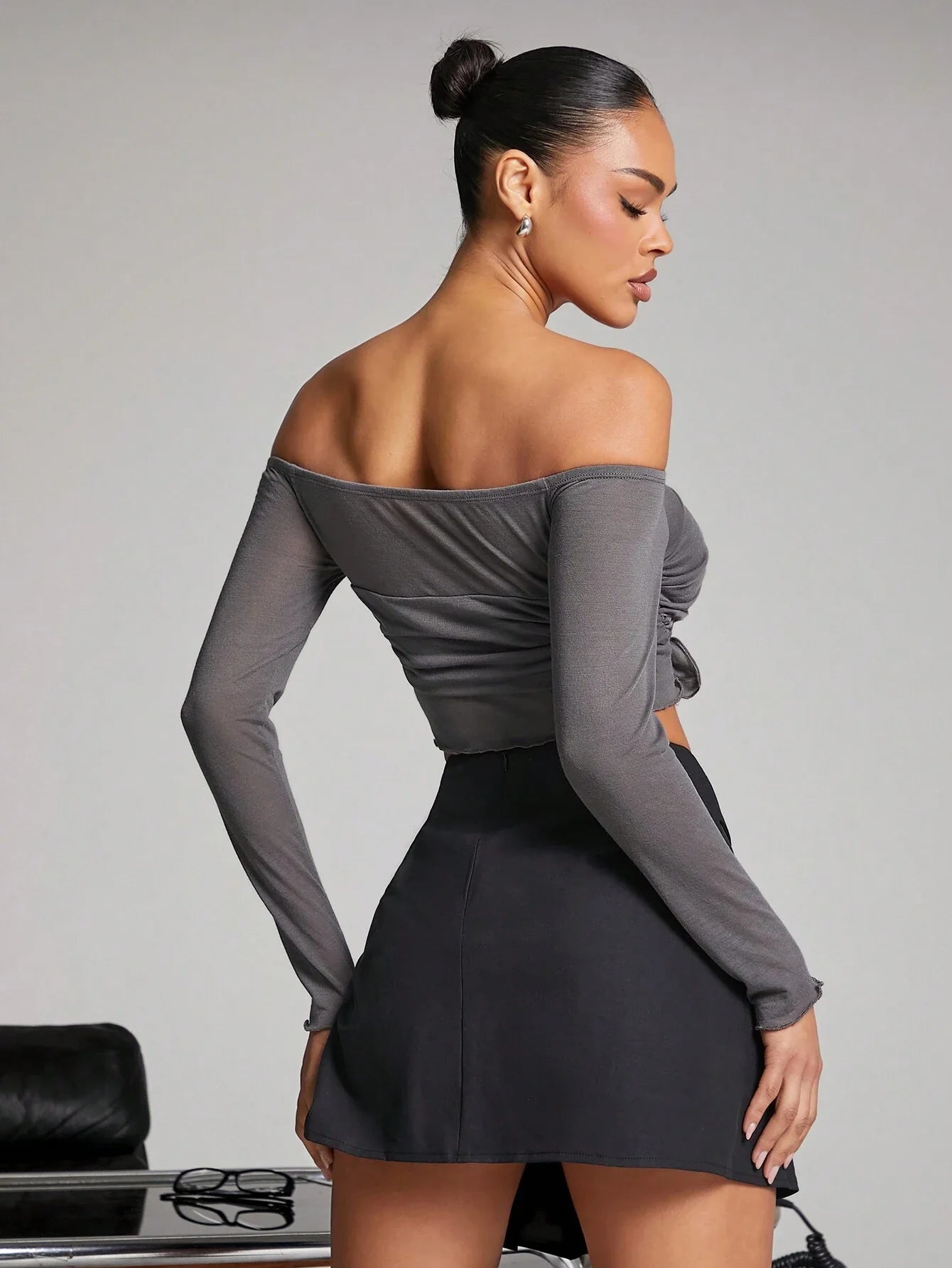 Details: Ruched, Sheer