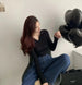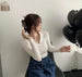 V-NECK COOLARED RIBBED CROP TEE