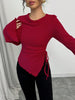 Details: Asymmetrical, Drawstring, Rib-Knit