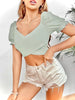 WRAP CROSS FRONT RIB KNIT CROP TOP
